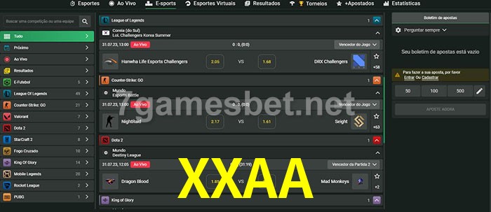 O XXAA oferece uma grande seleção de opções de apostas em e-sports com probabilidades competitivas